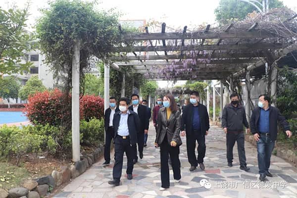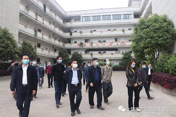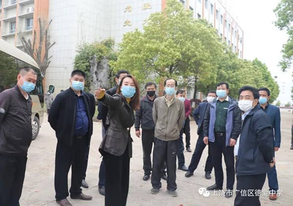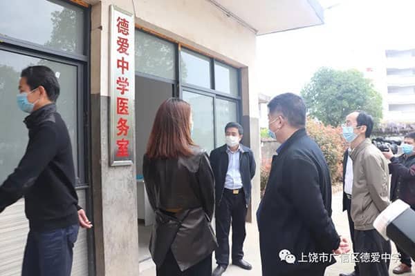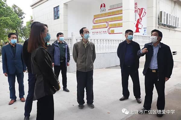 阔别三月,开学在即。根据省委、省政府统一部署,初三、高三年级定于4月7日正式开学。为保证开学的安全顺利进行, 3月25日上午,广信区区委书记熊孙魁到德爱学校就开学的准备工作进行全面的检查与指导。区委常委、宣传部长傅元本,副区长霍峰,区教体局党组书记、局长马焕斌等一行陪同。