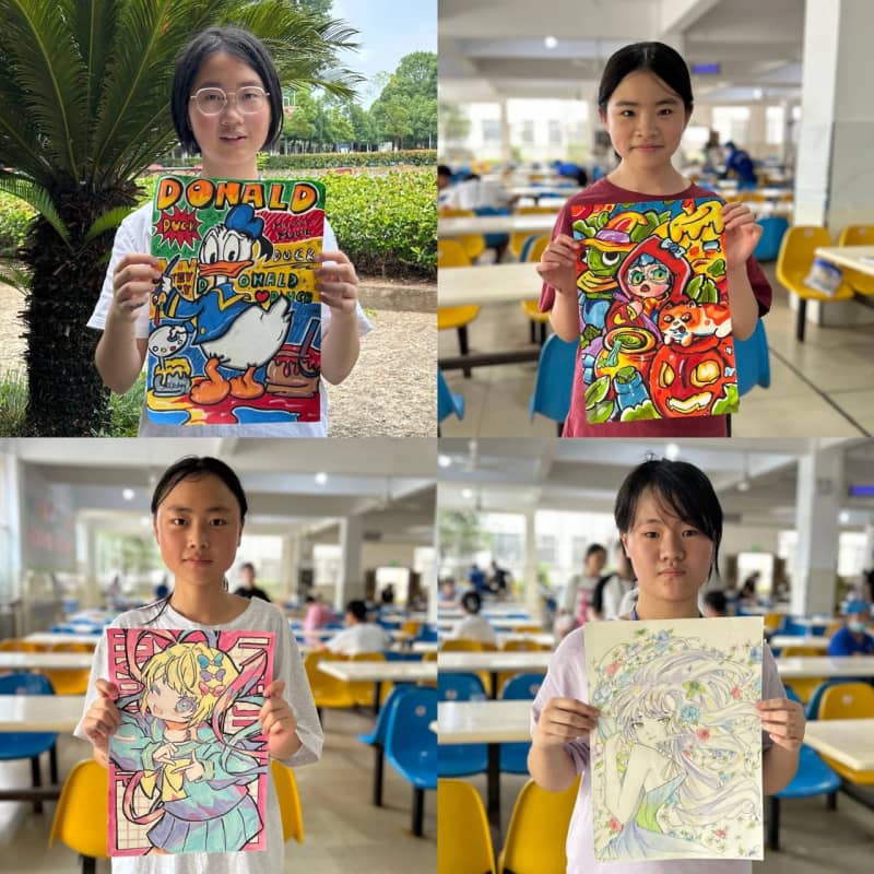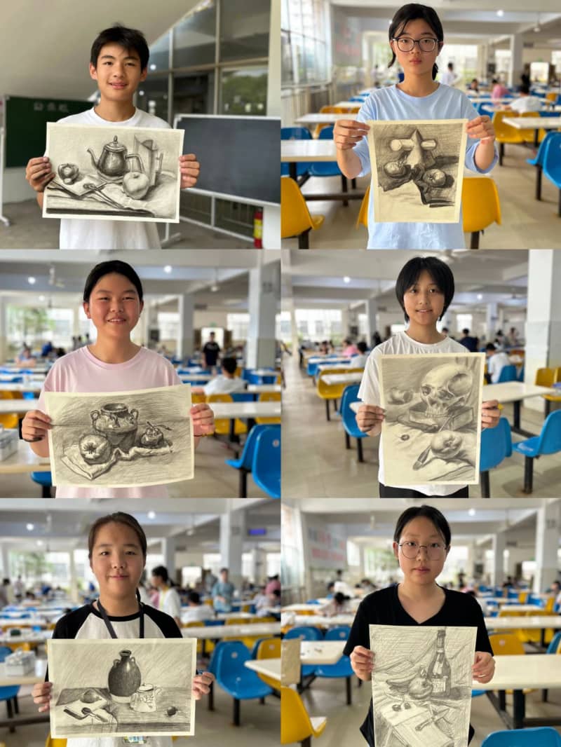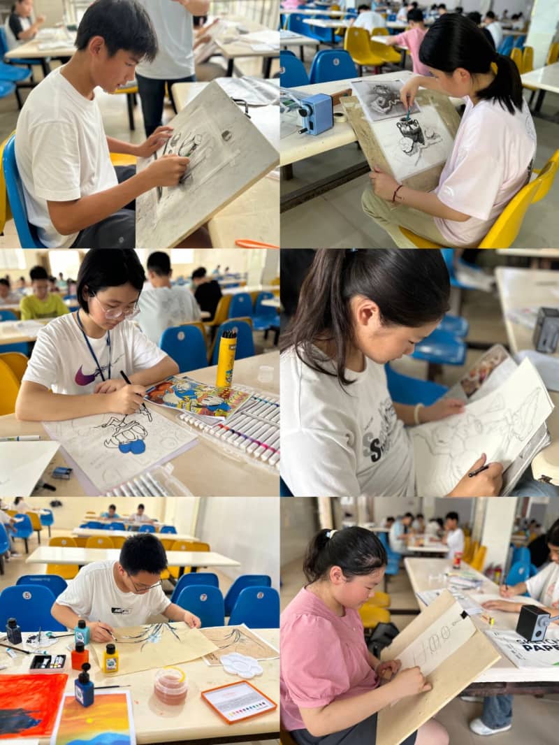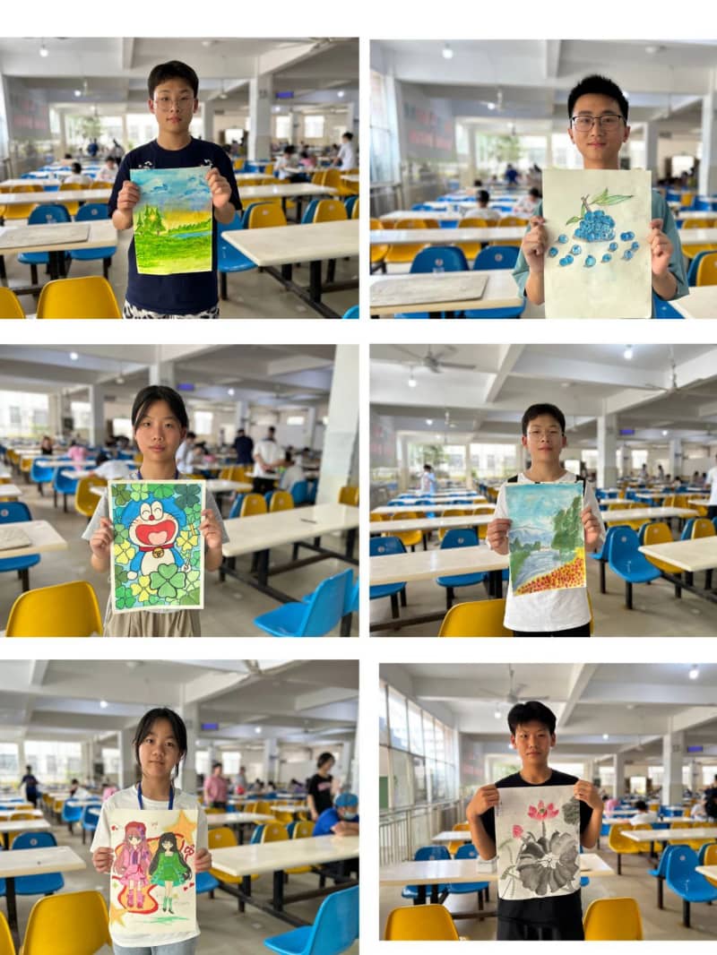 水彩、素描、油画棒等多种创作形式齐上阵,同学们以天马行空的想象力,将校园生活、自然风光、科幻畅想等主题融入作品。