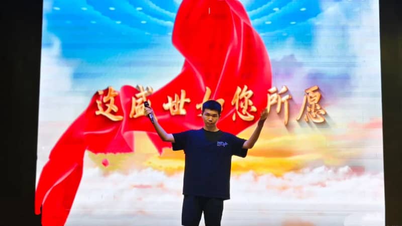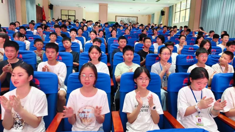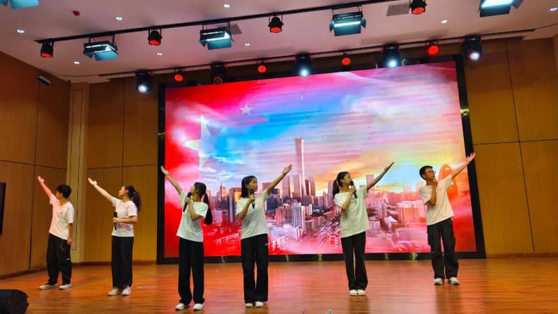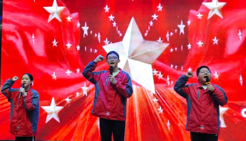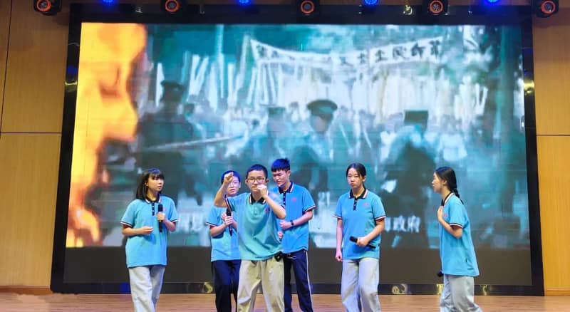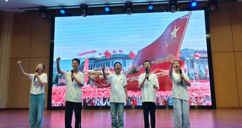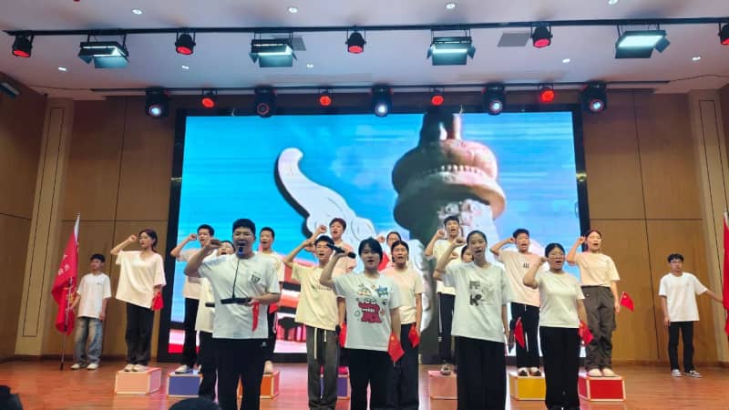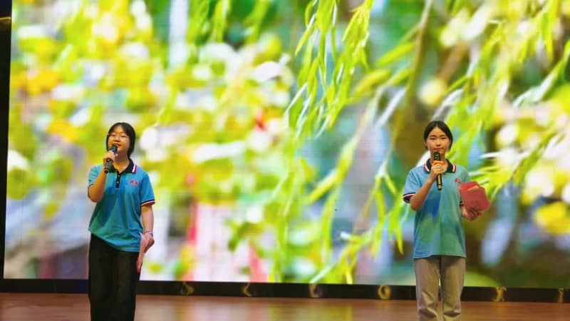 七(8)班方思璇等同学带来的《读中国》,饱含着对祖国炽热的爱,从对历史辉煌的自豪,到对沧桑岁月的感慨,再到如今昌盛中国的赞美,让观众的脑海里跟着展开了一幅波澜壮阔的历史画卷,引发了在场所有人强大的情感共鸣。八(2)班张麟夫等同学以磅礴之势朗诵了《百年沧桑》,带领大家共同走进一段段镌刻着岁月温度的故事,在光影流转间,触摸历史的厚重,感悟奋斗的力量,见证属于这篇土地的百年风华。他们分别为七年级场和八年级场点燃了最炽热的豪情,也为比赛画上了圆满的句号。