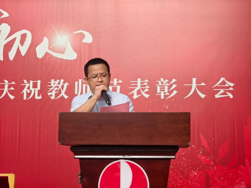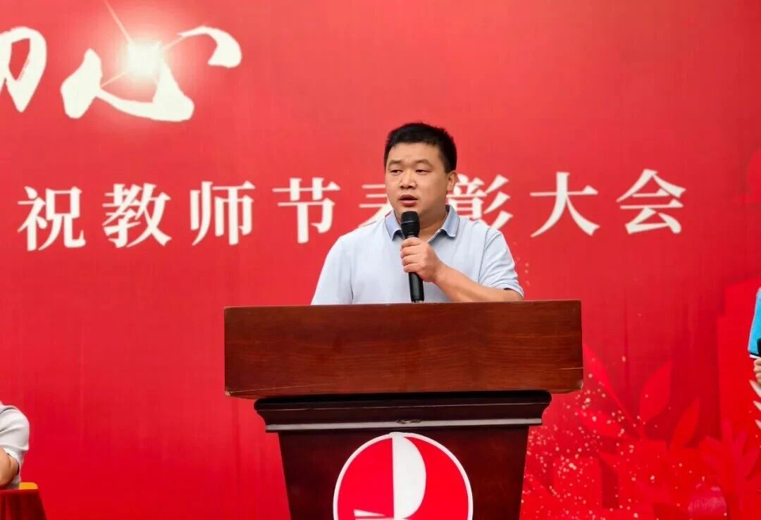 随后,班主任代表夏梦寒老师发言,表达了在讲台实现价值的荣幸与追逐教育梦想的自豪。她阐释选择教师职业的原因:与学生双向奔赴,见证彼此成长,收获感恩的幸福。她感恩戴校等领导的关怀及同事们爱岗敬业的温暖陪伴,提及学校在领导引领下持续发展。她表示自己会通过集体备课、同课同构等不断学习,应对教学挑战。她鼓励同学们勇敢追梦,承诺教师会做坚实后盾,并送上对学校、学子及同仁的美好祝愿。