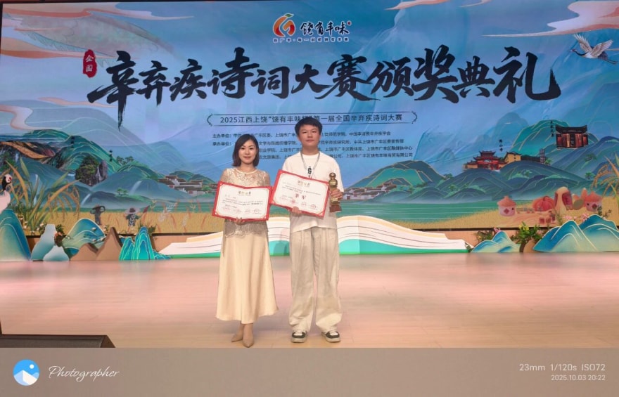 剑胆诗心,词韵上饶——我校学子夏智豪勇摘第一届全国辛弃疾诗词大赛季军
