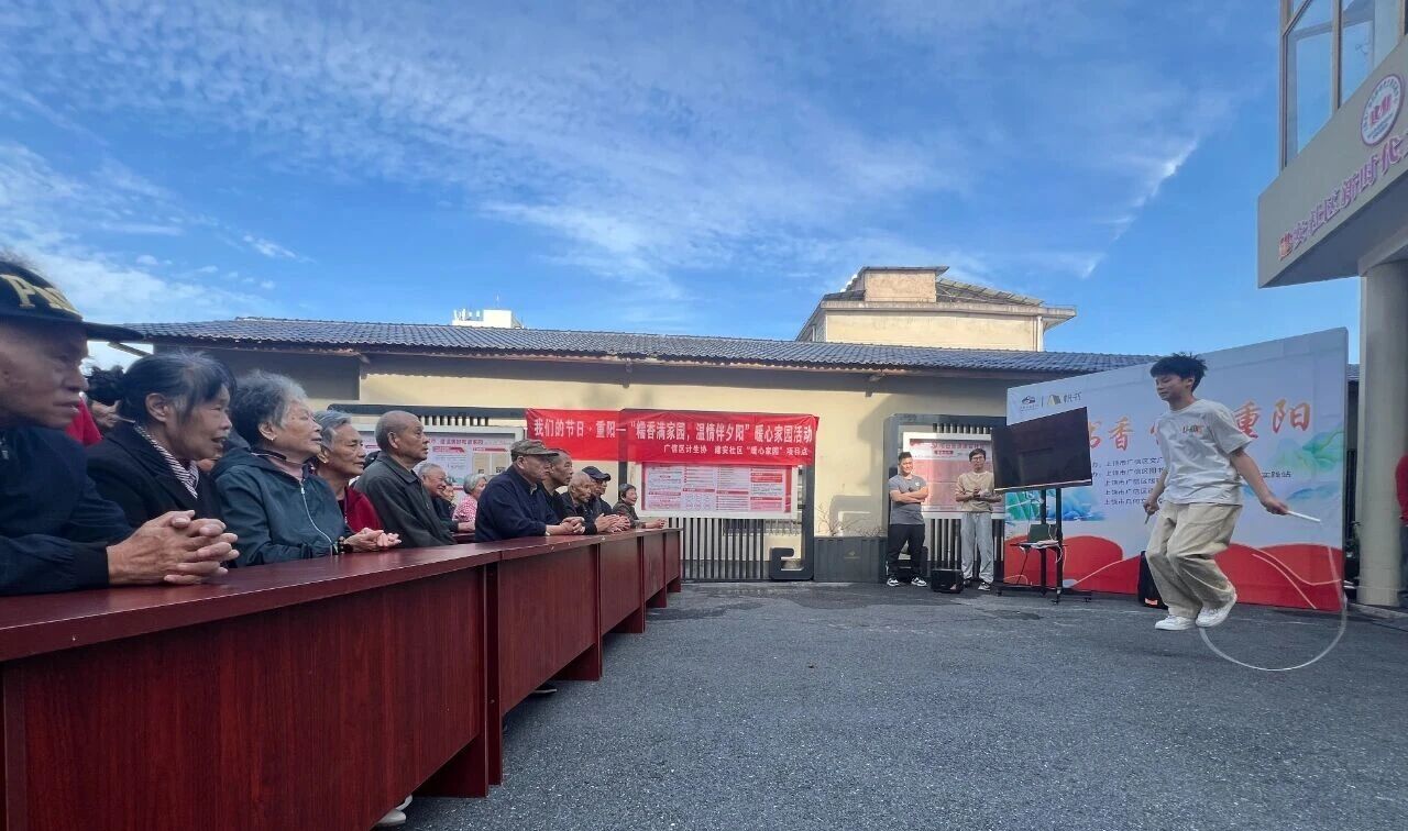 14:30,文艺表演拉开序幕。《中国人民志愿军战歌》的激昂旋律响起,学子们深情演唱,老人们纷纷拍手齐唱,歌声里满是对峥嵘岁月的追忆。随后的花样跳绳表演,学子们灵动穿梭,精彩技巧引得老人们连连夸赞,现场掌声不断。