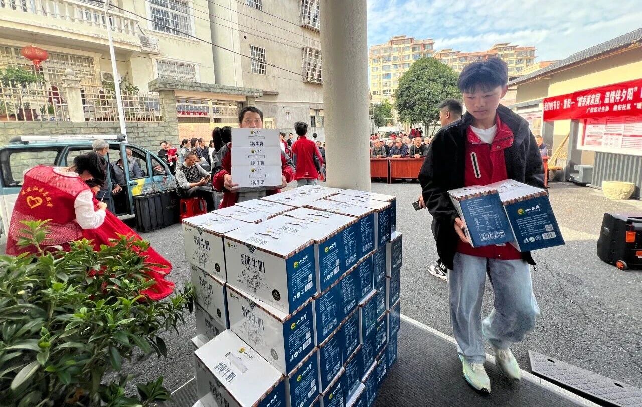 表演结束后,大家围坐共品新鲜米团,软糯香甜中满是温情。接着,学子们将康乃馨和牛奶等节日物资送到老人手中,一句句真诚问候、一个个温暖拥抱,让老人们感动不已。