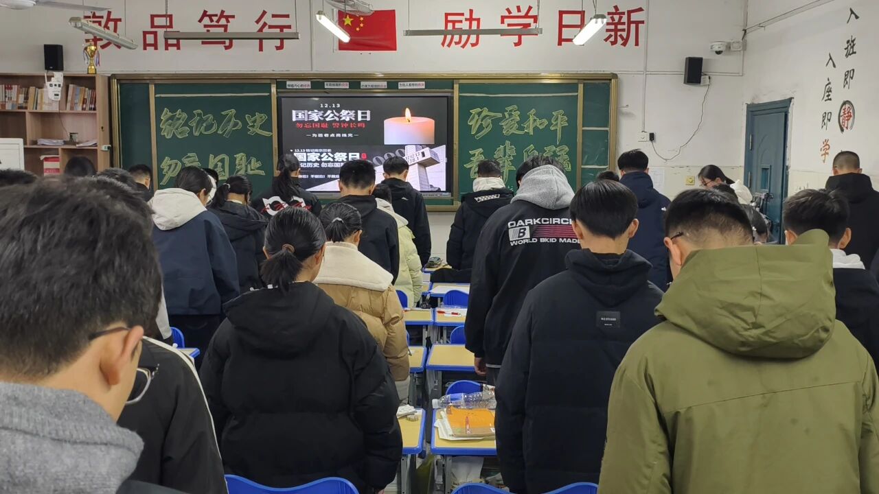 公祭日当天上午大课间,各班在教室里举行哀悼活动。政教处徐小金主任发表了讲话,强调铭记历史的重要性,并鼓励同学们将爱国之情转化为实际行动,为祖国的繁荣富强贡献自己的力量,现场气氛肃穆而凝重。