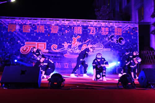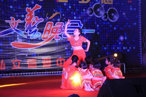 我校六年级同学以一支激情、活力的《小苹果》表演,拉开了整场晚会的序幕。他们用动感的节拍和整齐的舞步令全体师生激情澎湃!整场晚会艺术表演形式多样,风格各异。我校诸海亮老师深情款款的配乐诗朗诵—朱自清先生的《匆匆》,激荡人心。乐器演奏的动人旋律,让观众们感受了最具古典气息的古筝的无尽魅力。民族舞蹈《茉莉花》、《彩云之南》以曼妙优美的舞姿,十指变幻的语言演绎了人们对生活的热爱,让观众们沐浴在了春风里,阳光下。活力四射的街舞《XOXOXO》等,堪称是一场视觉上的饕餮盛宴。还有动感十足的爵士舞《说出你的愿望》,现代舞《I will be back》、《魔法的城堡》、《爱你》,年轻富于动感,激情且充满生机。深情款款的老师串唱《再回首》、《讲不出再见》,再次演绎了师生情深。小品《愚昧的农夫》、《大话西游》以诙谐的语言,搞笑的对白,滑稽的对答令全场观众捧腹开怀。晚会的每一个节目都精彩至极,多才多艺的同学们令大家大开眼界!晚会现场高潮迭起,师生们欢呼呐喊、沉醉其中。