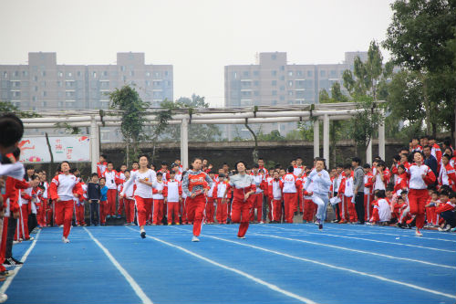 而后戴校长致开幕词,他希望全体运动员牢固树立“安全第一、友谊第一、比赛第二”的思想,发扬“更快、更高、更强”的奥林匹克精神!希望裁判员、工作人员把忠心献给学校,爱心献给学生,责任心献给大会。接着,裁判员和运动员代表进行宣誓。随后运动会各项比赛开始。