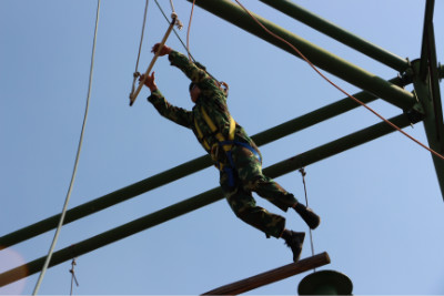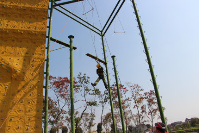 在紧接着信任背摔项目的后面是“毕业墙”。还没有开始,光听名字就知道这就是我们此次拓展训练的重点与考试。4米高的光滑的墙壁,我们该如何攀登?在教练的指导下,我们搭起了人梯,第一名同事在大家的帮助下踩着人梯爬上去了,后面的同事在已经攀登上去的同事的帮助下都一一成功翻越“毕业墙”,最后一名同事已经没有人梯可以踩了,在教练的“技术支持”下,在“墙顶”的同事倒挂下来,把最后一名同事拉上去了。从开始到结束,一直有八名同事默默当人梯,教练为大家分析了成功的原因并告诉所有人要在生活和工作当中记住帮助过你们的人,结束的时候大家互相拥抱。毕业墙的征服代表我们成为一个团结集体,在素质拓展的训练中成功毕业。