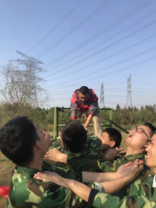 午后,经过短暂的休息,我们开始了信任背摔项目,信任背摔考验的是对队友的信任,在1.6米高的平台台上,身体笔直的往后倒下去,台下的队友用手臂在彼此的肩膀上搭成一个软垫接住倒下的队友。“准备好了吗?”,“时刻准备着”,台上台下这一问一答,使得倒下的同事带着忐忑的心安全着落在队友搭建起的安全港,这就是信任,这就是团队。