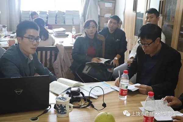 吴国波:外校教师对我们的小组合作是非常感兴趣的。在交流中我告诉他们,我们班的学生编排位置是参照成绩搭配起来的,中间坐成绩最好的,两边坐成绩稍逊的。这样做有利于学生成绩的共同提高,小组讨论的顺利进行,也有利于提高老师的教学效率、方便调查学情,及时调整教学进度。我们日常的备课中,每次都是以学科、年级为单位的,对要上的教学内容进行讨论,大家一起对课件进行修改、制作。这样有利于各学科教学进度的统一,提高本学科的成绩。