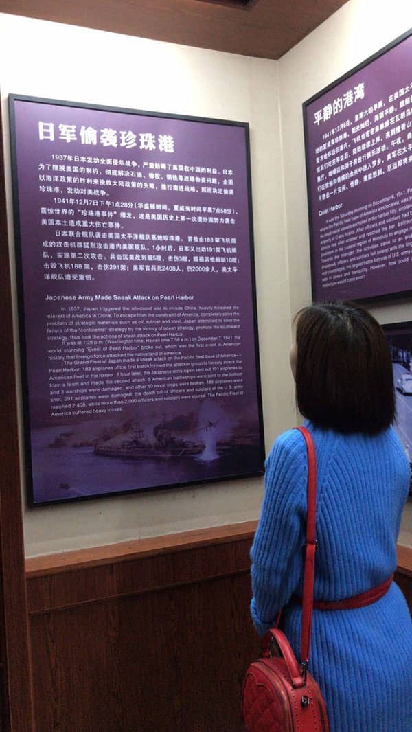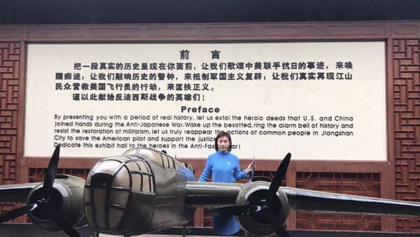 从戴笠故居出来,沿着老街一直走到街头,过了小桥,就来到了“ 中美联手抗日纪念馆”。这里主要是陈列江山民众营救杜立特行动飞行员事迹。该馆占地900多平方米,分为“美军反击东京湾”“民众营救飞行员”等七大区块,全方位、多角度地展示中国民众营救美国飞行员的历史画面。