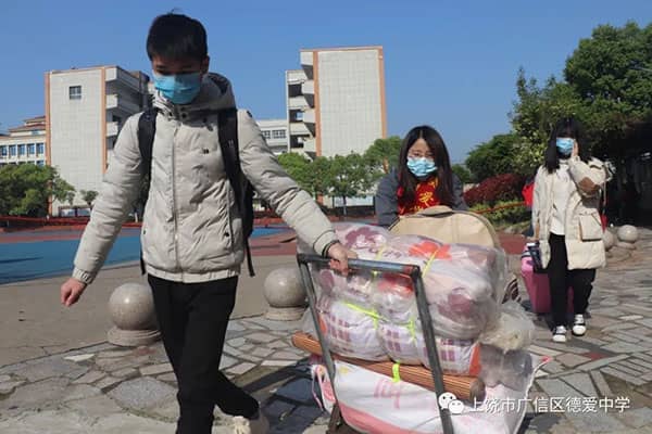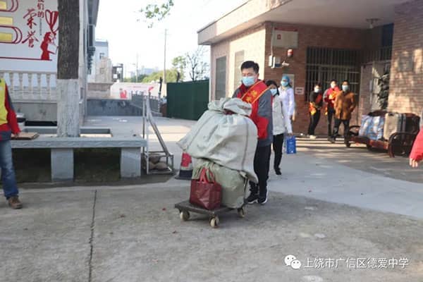或推车或手提,老师们虽然干着搬运工的体力活儿,但接到了安全返校的学生,他们的心里有着说不出的高兴。