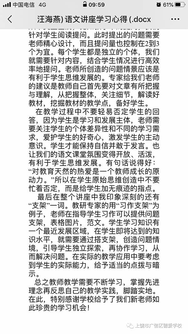 培训结束后,新老师们纷纷表示,能接受这样全面的校本培训是一种荣幸,更是一种身心的洗礼,希望自己能在德爱越飞越高。