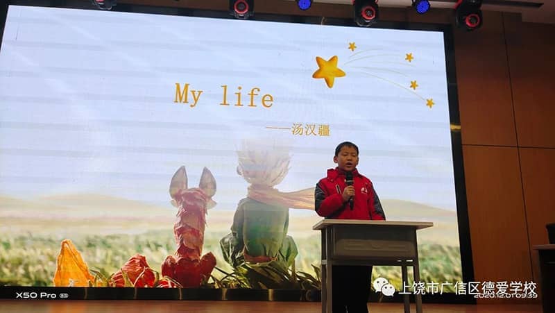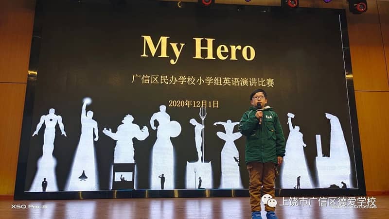 此次比赛分为两个主题,其中小学三四年级以My life为话题,进行讲故事比赛。五六年级以My hero为题进行演讲比赛。