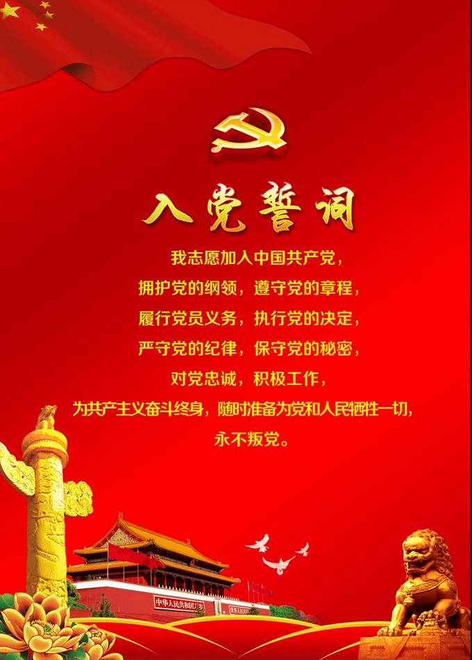 入党誓词,是党组织对党员的基本要求,是每一个党员的行为准则,同时也是一名党员对党和人民做出的庄严承诺和保证。