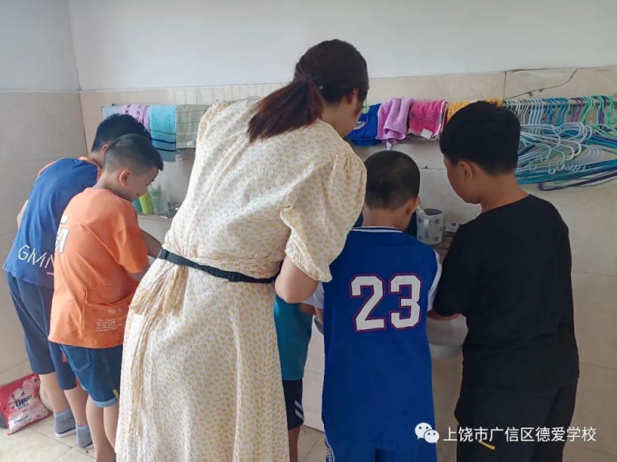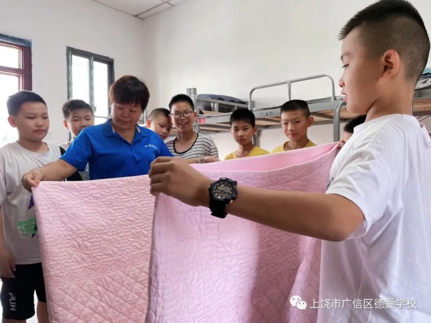 班主任老师和生活指导老师一齐进入孩子们的寝室,手把手教学。