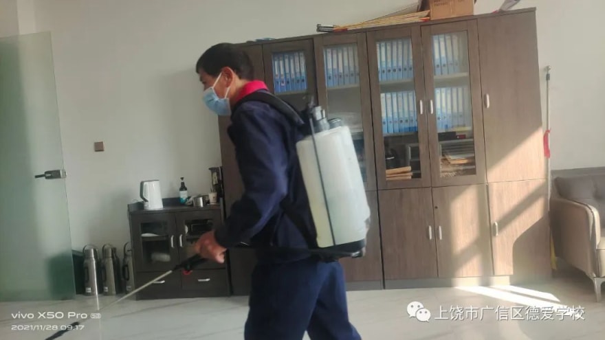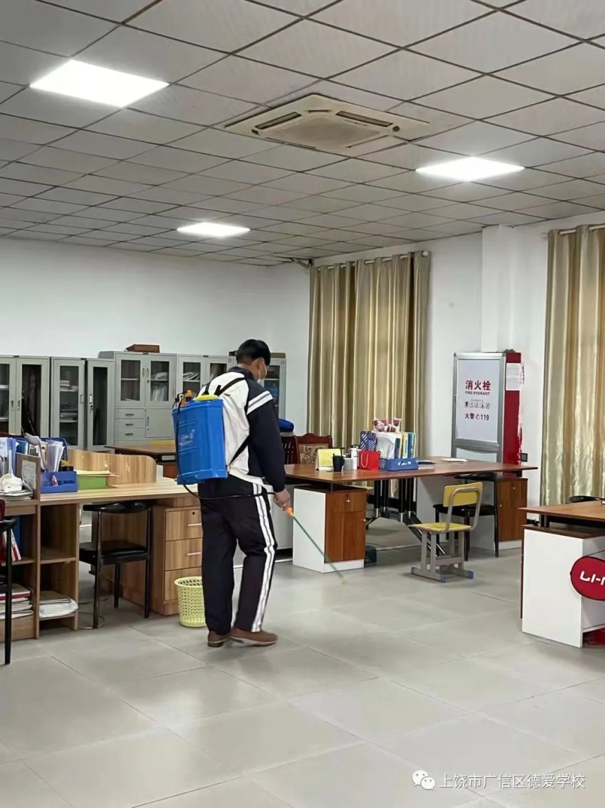 学校在复课前进行了多轮全面消杀,为学生筑起一道“爱心守护墙”。