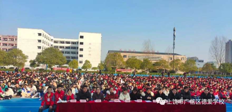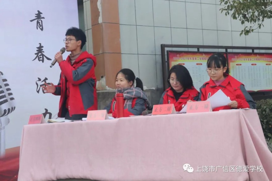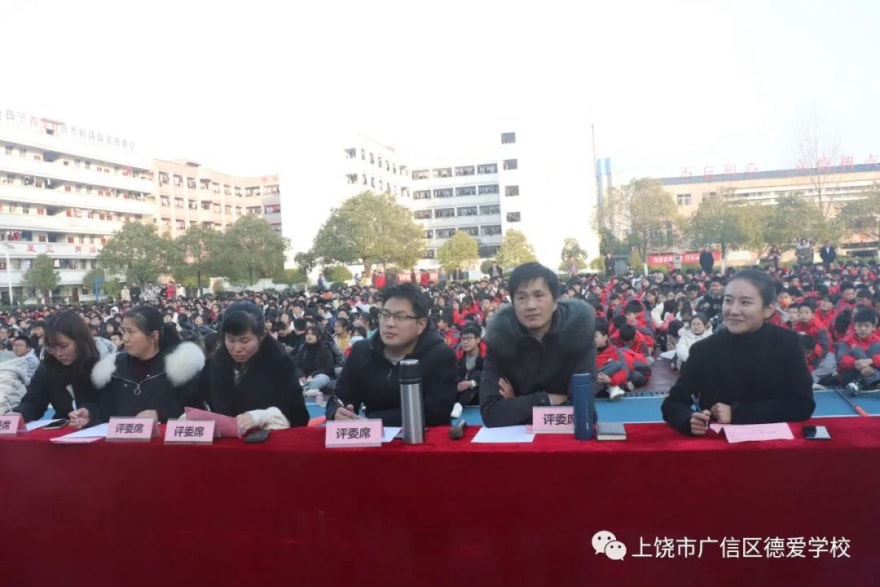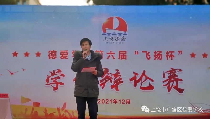 12月18日下午,德爱学校“飞扬杯”第六届辩论赛在校田径场举行,戴如校长及全体师生全程观看了此次比赛。本次辩论赛分两场,第一场七年级代表队对阵八年级代表队,第二场八年级代表队对阵九年级代表队。