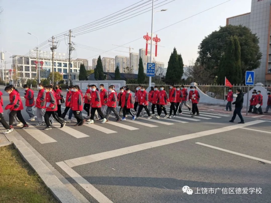 路上,学生们踏着轻快的步伐文明、有序地前往经开区消防队。