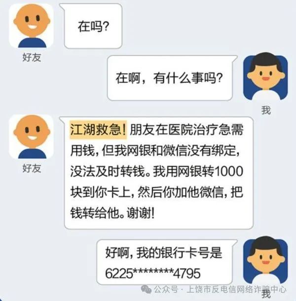 陈同学收到其闺蜜在QQ上的消息,称自己的朋友受伤住院,需要手术,但是自己微信没绑定银行卡,想先给陈同学银行卡转3300元,让其代为微信转账。