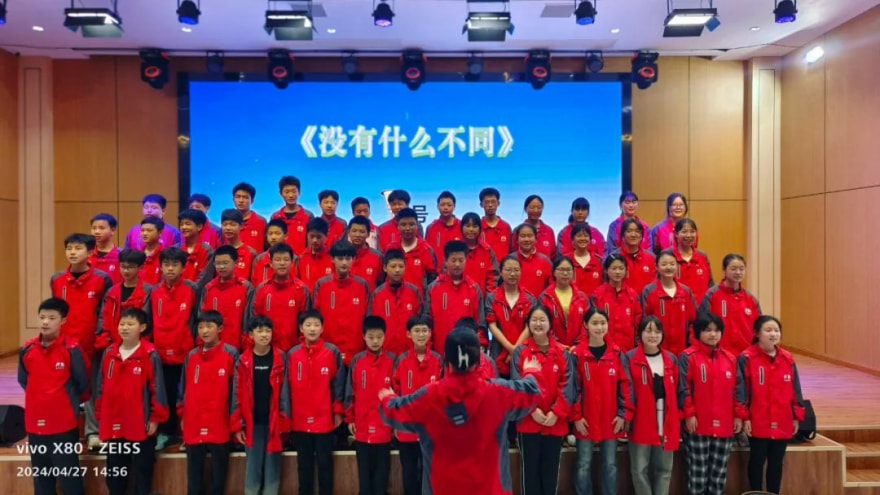 为了丰富校园文化生活,推进学校艺术教育,培养学生艺术审美情趣和爱国思想意识,通过本活动促进学生德、智、体、美等全面发展为目标,突出时代特征、校园特色和学生特点,展示中学生热爱祖国、朝气蓬勃、积极向上的精神风貌,体现中学生向真、向善、向美和向上的校园文化特质,促进学生全面发展。4月27日下午,德爱学校六、七、八年级同学在报告厅隆重举行“唱响青春,放飞梦想”主题大合唱比赛。18个班级组成的合唱队在热烈的掌声中展开角逐,每个班的演唱歌曲是《德爱之歌》和任选一首红歌。