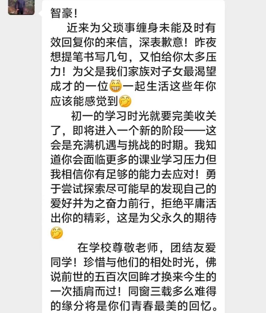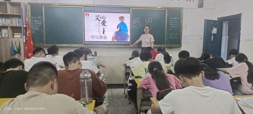 由老师把写好的感恩内容发给父亲表达感激之情。