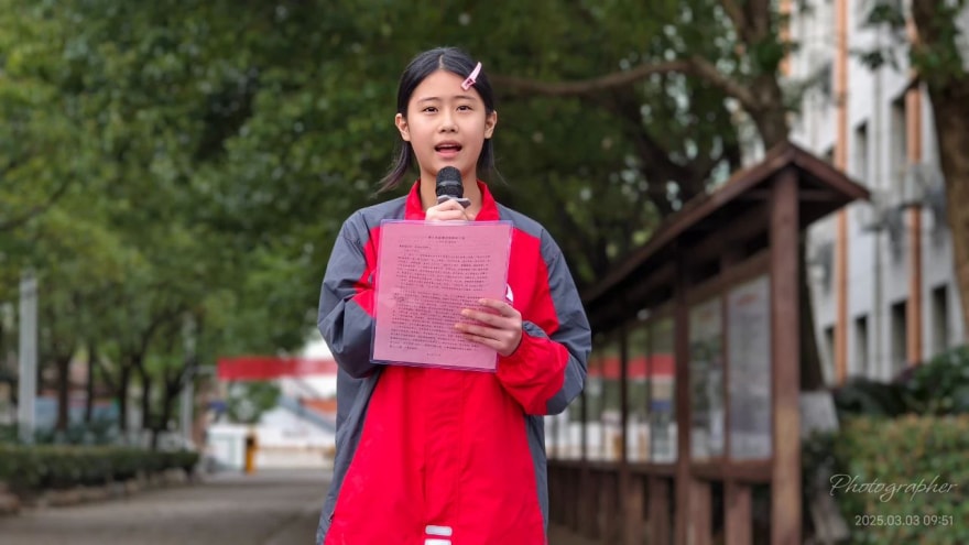 3月3日上午升旗仪式上七(1)班姚名凯同学做“学雷锋,从小事做起”的国旗下主题演讲。