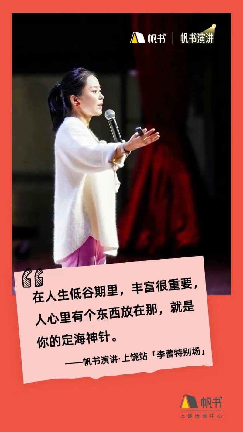 李老师在帆书上讲了很多经典,本次活动她也再次强调阅读经典的重要性及其重大意义:经典文学和艺术最大的光,首先是滋养,然后让你成为了自己,而不必融合起来。她说,无论是苏轼还是辛弃疾,他们对待生活的态度都影响了一代又一代人。没有完美的人生,不完美才是人生。我们的人生正是因为有各种各样不同的经历才更加精彩。我们要像王阳明所说的“常快活就是真功夫”一样去生活!