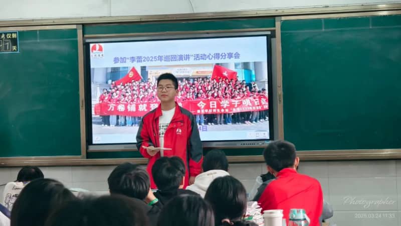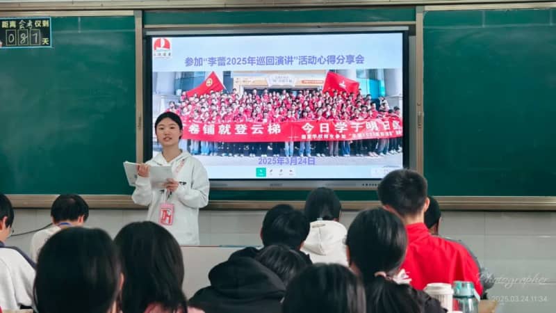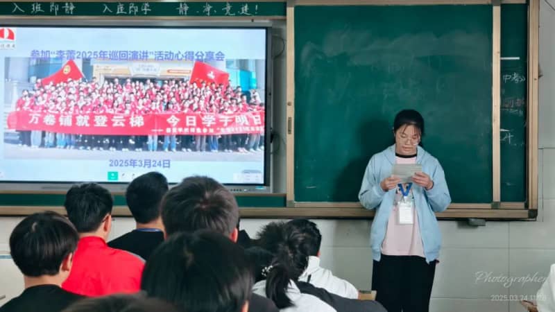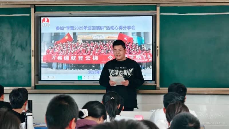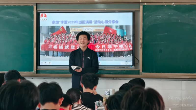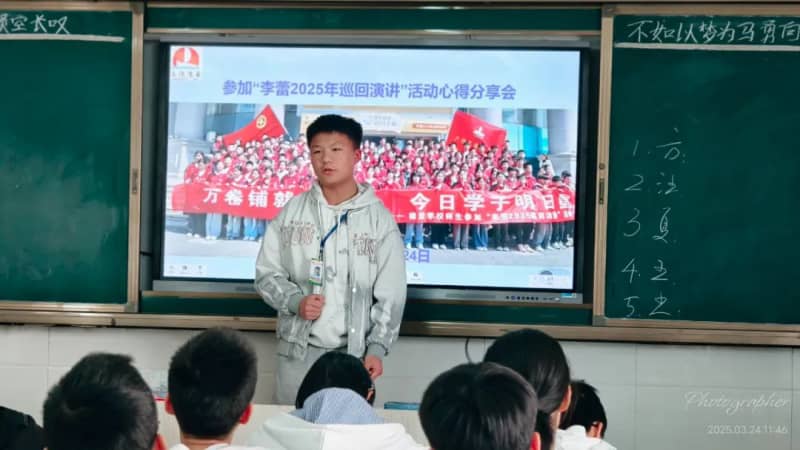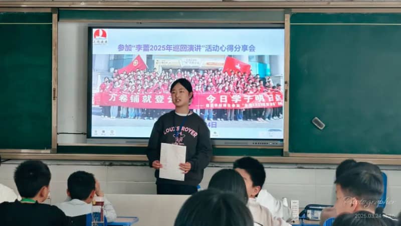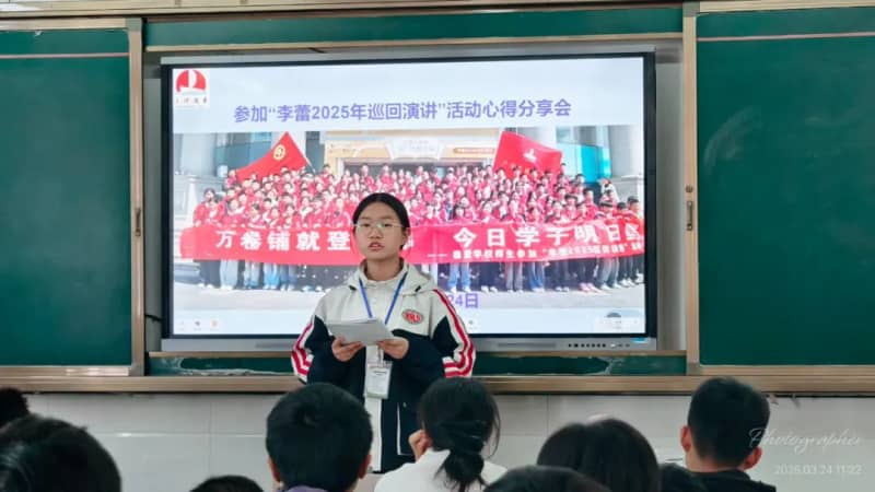 3月24日上午班会课上,参加此次活动的每一位学生代表分别给本班同学分享自己的心得感悟。有的转达了李老师的演讲内容;有的简析了李老师演讲中的某一点,例如,使命感;还有的则谈论了自己对整场演讲的感悟,如李老师教会我们用积极心态面对生活中的困难和挫折。