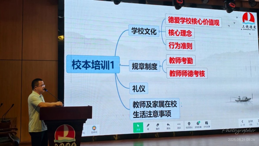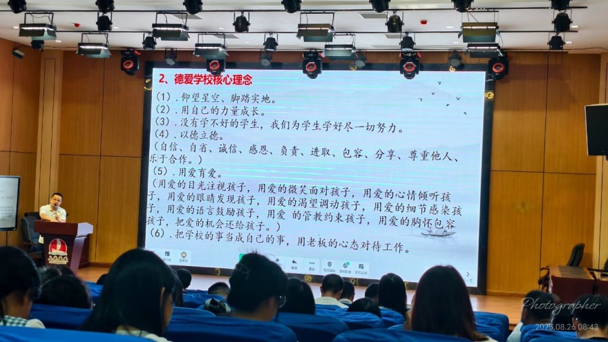 暑气渐退,秋意初显,教育的脚步从未停歇。为确保新学期教育教学工作平稳有序开展,进一步提升教师专业素养与教学能力,8月26日至29日,德爱学校组织全体教师开展了为期四天的校本培训,为教师们充电赋能。会议由戴如校长主持。