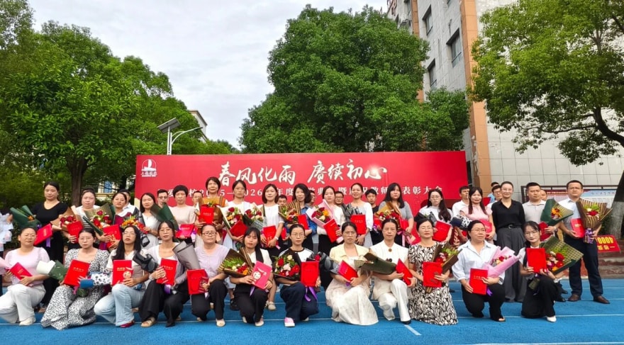 秋韵荡漾,硕果飘香。在这个洋溢着感恩与温情的九月,我们迎来了第41个教师节,为表达对老师们最真挚的敬意与祝福,9月10日上午,德爱学校全体师生齐聚操场,隆重举行2025——2026学年度开学典礼暨庆祝教师节表彰大会。典礼由八(8)黄旰、九(1)夏涵佳同学主持。