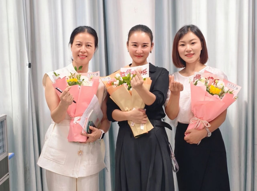 会后,戴如校长、方海林副校长、张运罡副校长一行到办公室为每位老师献花表达节日的问候并送上祝福。大家纷纷表示,将以此次典礼为新起点,不负韶华,锐意进取,共同谱写学校发展的新篇章。