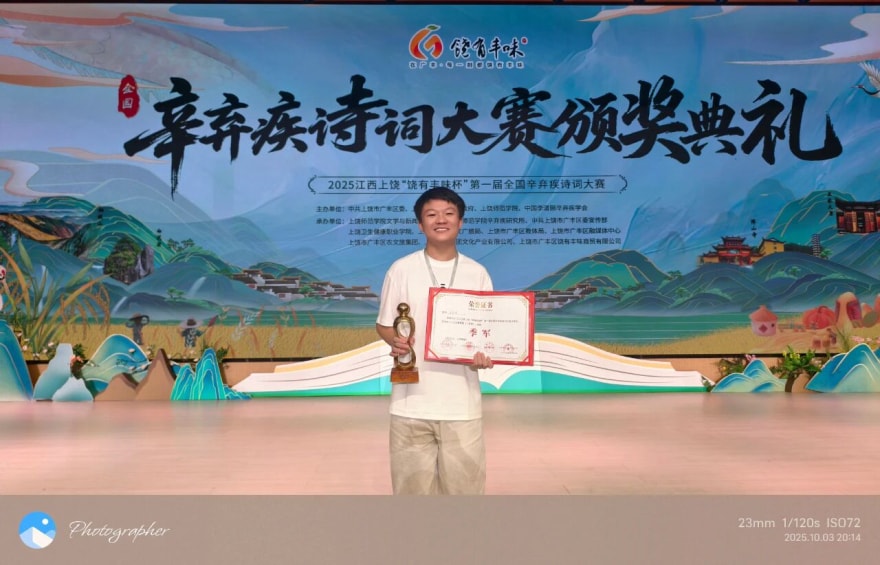 剑胆诗心,词韵上饶——我校学子夏智豪勇摘第一届全国辛弃疾诗词大赛季军