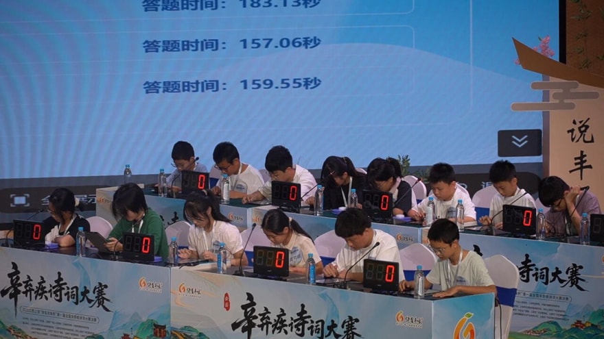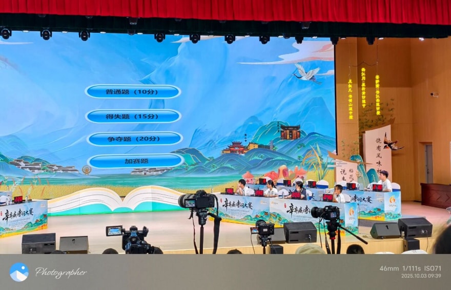 本次大赛历时近两个月,分三阶段层层递进:8月中旬线上初赛打响,10月1日笔试复赛筛选,10月3日总决赛巅峰对决。赛事以辛弃疾诗词为核心,设置“群雄逐鹿”“当仁不让”“一马当先”“英雄争霸”四大环节,全方位考核选手对辛词的记忆精度、理解深度与应用活度。夏智豪一路稳扎稳打,从初赛第15名稳步攀升至复赛第8名;决赛第三轮“一马当先”他与另两名对手战至加赛,关键时刻凭借极速反应抢得加赛题并精准作答,成功晋级前四,最终锁定季军席位,尽显扎实功底。