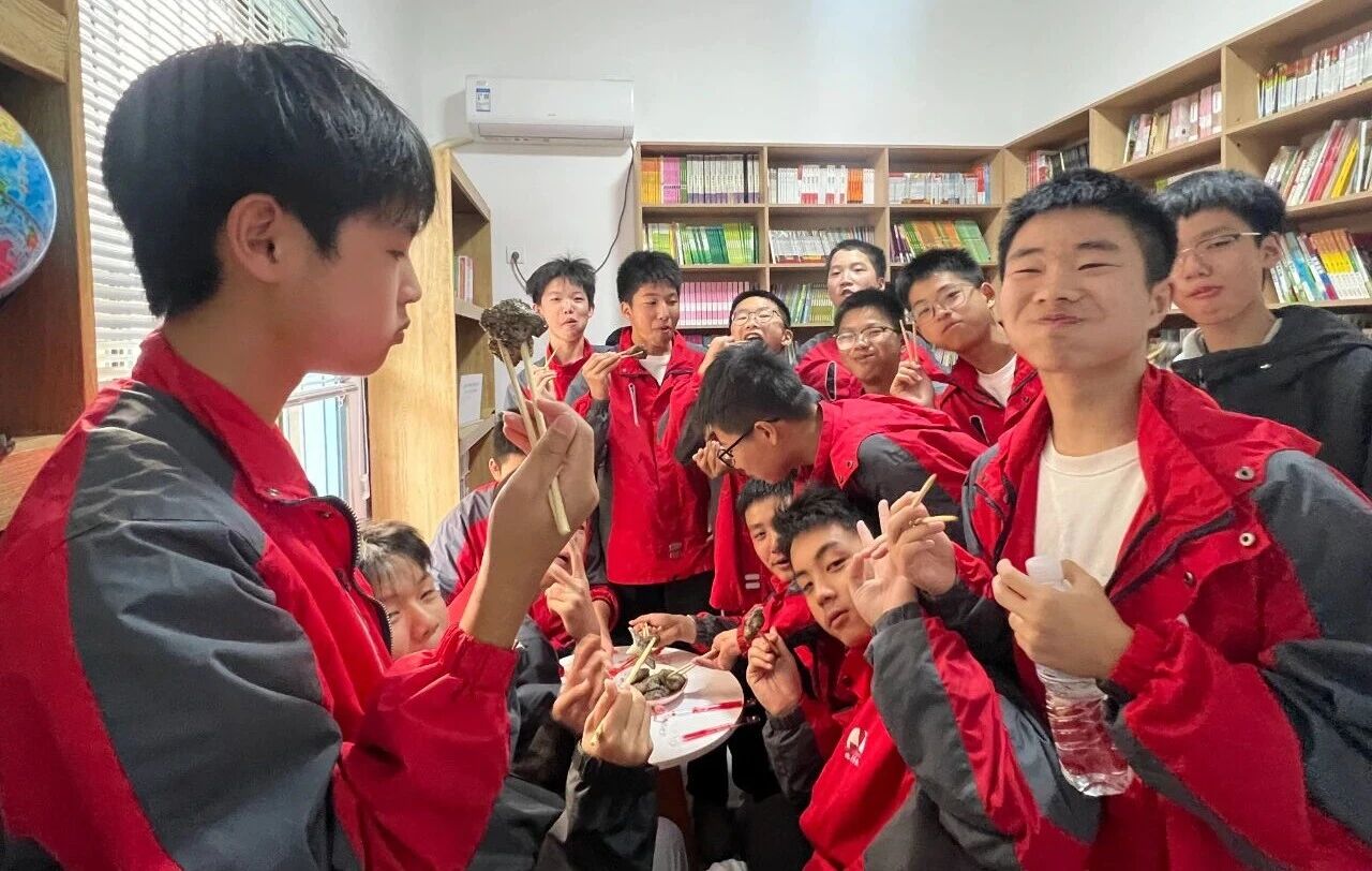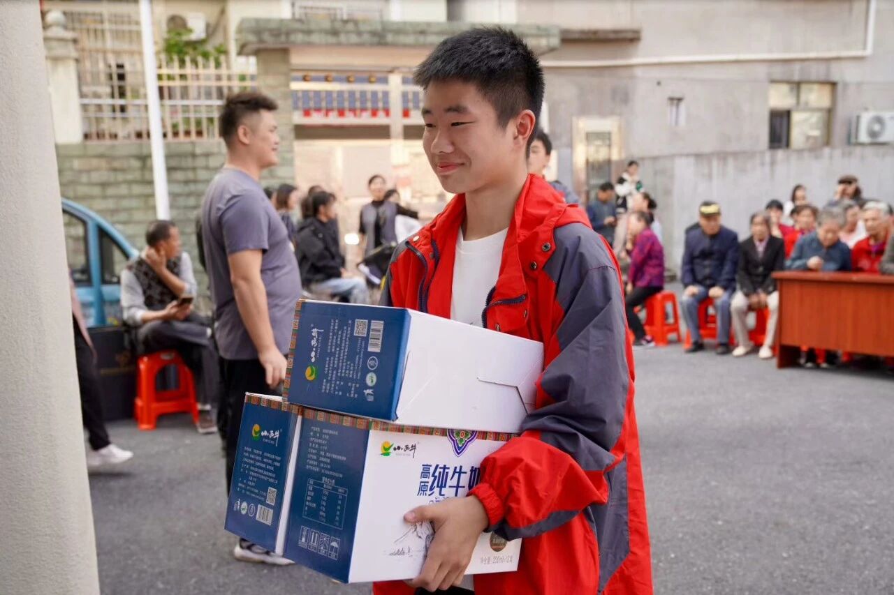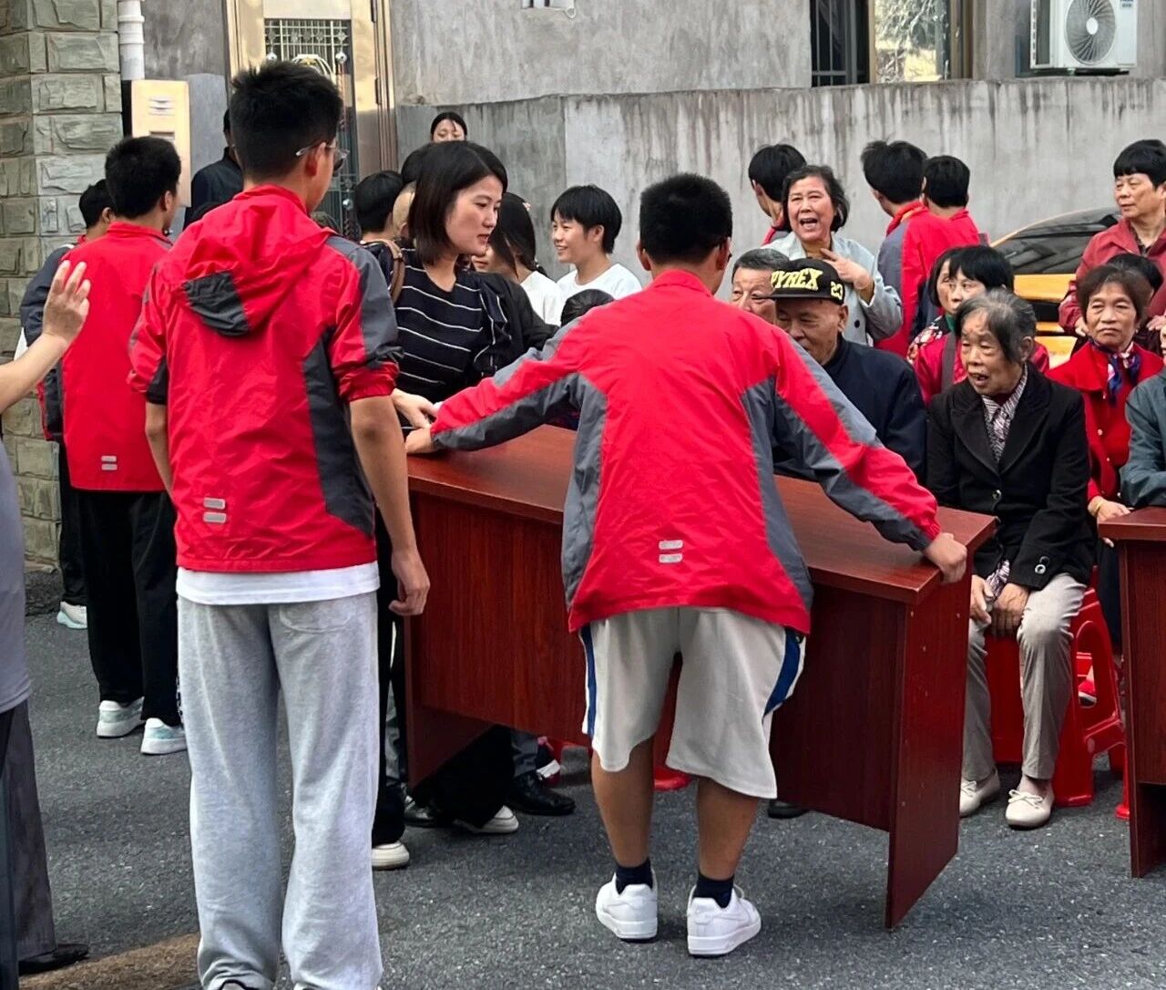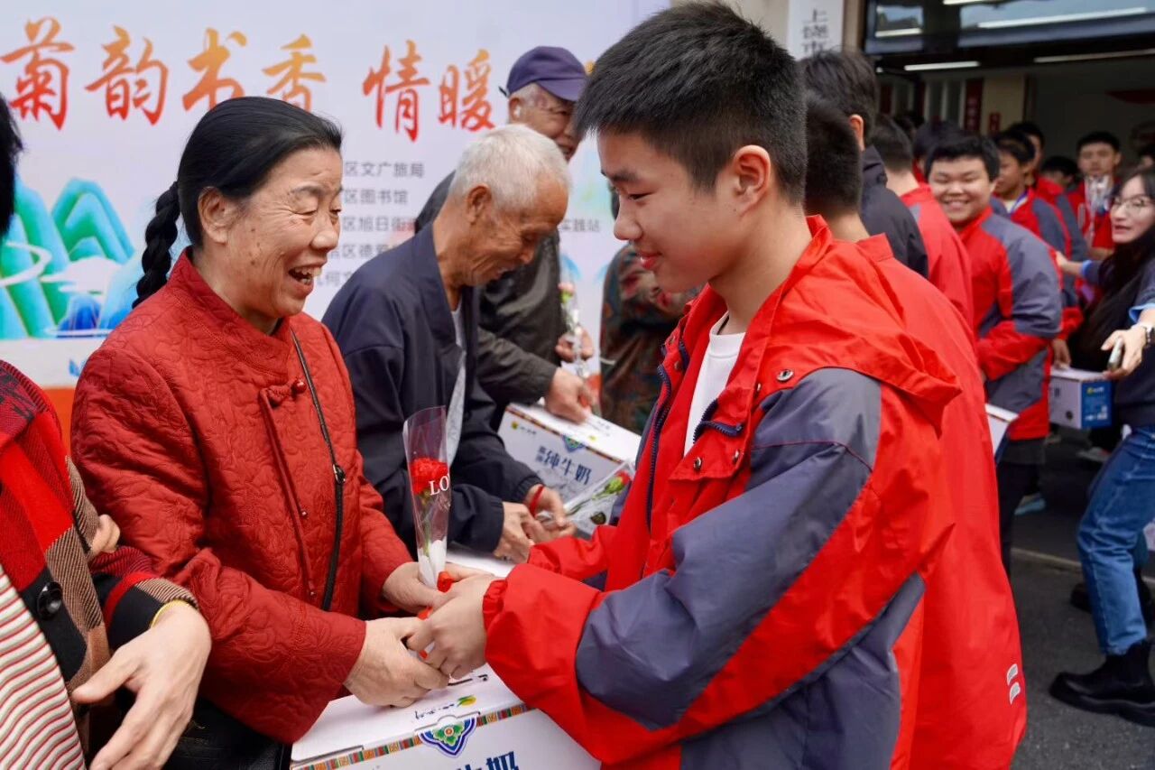 表演结束后,大家围坐共品新鲜米团,软糯香甜中满是温情。接着,学子们将康乃馨和牛奶等节日物资送到老人手中,一句句真诚问候、一个个温暖拥抱,让老人们感动不已。