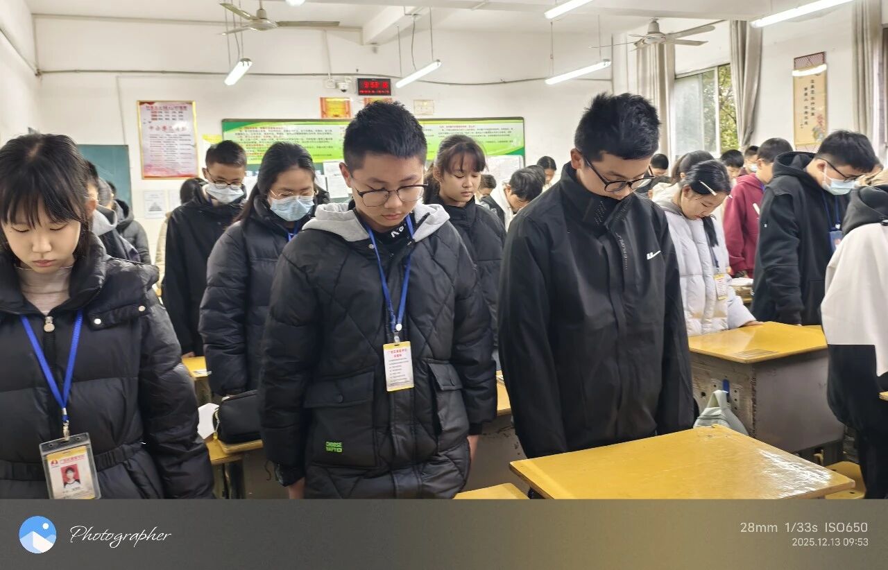 公祭日当天上午大课间,各班在教室里举行哀悼活动。政教处徐小金主任发表了讲话,强调铭记历史的重要性,并鼓励同学们将爱国之情转化为实际行动,为祖国的繁荣富强贡献自己的力量,现场气氛肃穆而凝重。
