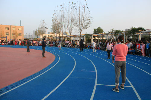 而后戴校长致开幕词,他希望全体运动员牢固树立“安全第一、友谊第一、比赛第二”的思想,发扬“更快、更高、更强”的奥林匹克精神!希望裁判员、工作人员把忠心献给学校,爱心献给学生,责任心献给大会。接着,裁判员和运动员代表进行宣誓。随后运动会各项比赛开始。
