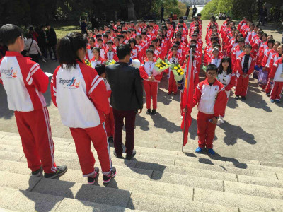 学生代表在纪念碑前发表讲话鼓励大家要勿忘国家兴与衰,珍惜现在来之不易的幸福生活。要记住方志敏等烈士为新中国的成立做出的贡献。